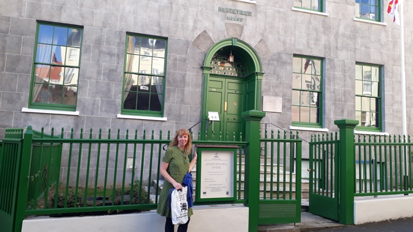 Andrea de Leeuw voor het huis (in ballingschap) van schrijver/dichter Victor Hugo