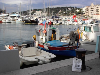 In Cassis sur mer laat Frans Woolthuis zijn tasje achter bij de vuilnis.